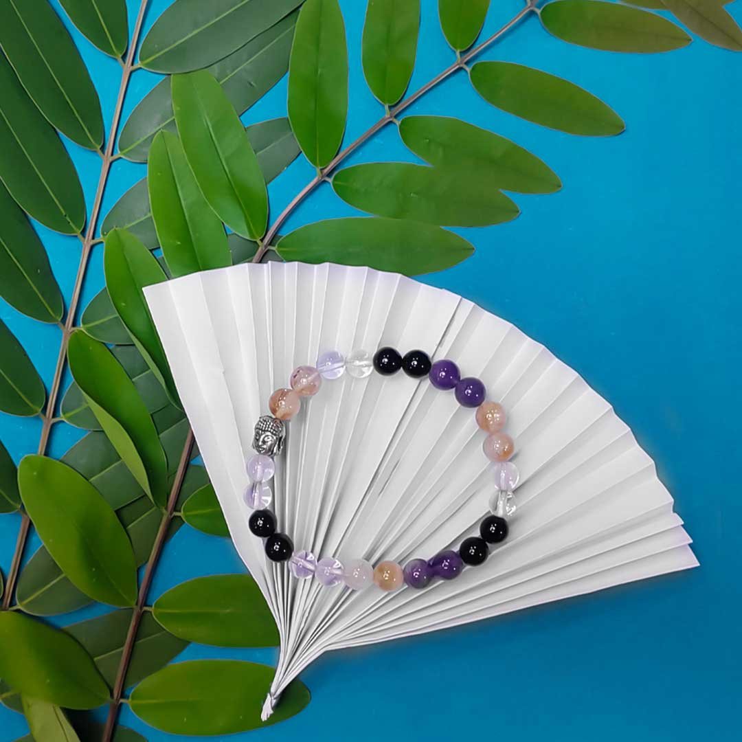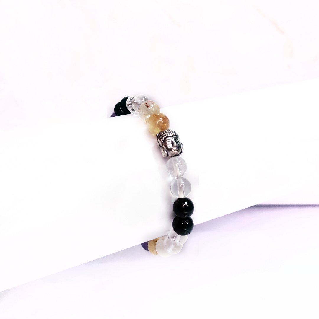 A Libra bracelet adorned with citrine, clear quartz, black tourmaline, and amethyst offers a harmonious blend of energies perfectly attuned to the balanced, diplomatic, and harmonious nature of the Libra zodiac sign. Each gemstone in this ensemble provides unique benefits that complement Libra’s desire for peace, harmony, and aesthetic beauty, fostering balance, clarity, and protection.
